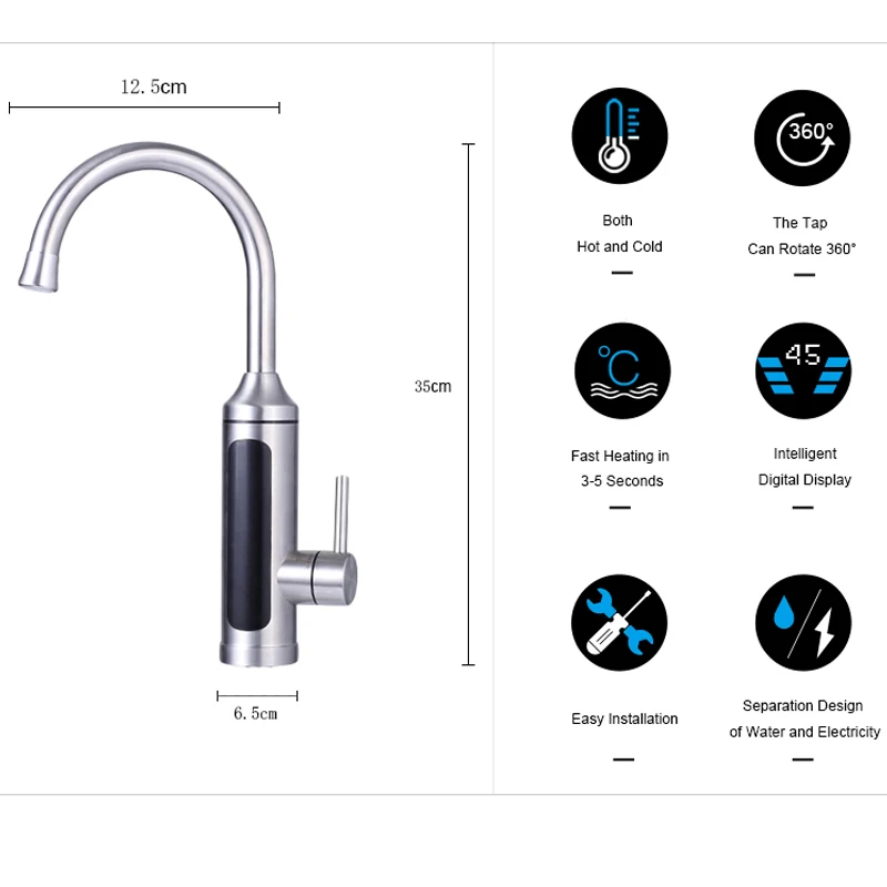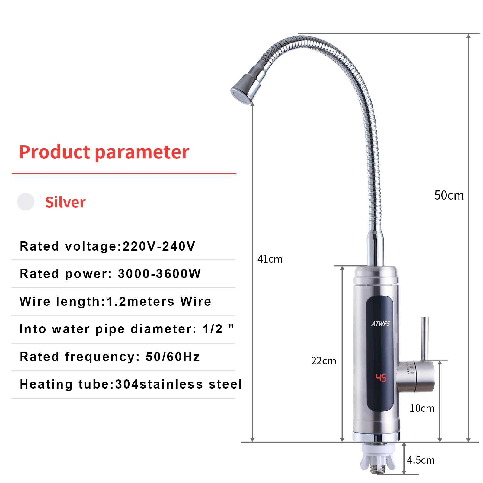 💧 Instant Comfort - The ATWFS 3000W Instant Hot Water Faucet is your kitchen and bathroom solution for on-demand hot water. Engineered with advanced technology, this tankless heater provides instant hot water at the turn of a tap, perfect for everyday tasks like cooking, cleaning, and personal care. ✨ Why you need it: - Get hot water instantly without waiting for a tank to fill. - Designed with a high-pressure safety valve for worry-free use. - Adjustable temperature ensures your comfort with every use. - Durable stainless steel construction resists corrosion and wear. - Energy-efficient design saves on utility bills. ❤️ Why you’ll love it: - Intelligent temperature display for easy monitoring. - Built-in safety features give you peace of mind. - Sleek stainless steel finish adds elegance to any setting. - Compact size fits seamlessly in any kitchen or bathroom space. - Versatile setup with a universal pipe design for easy installation. 🔧 Guide to use: Simply install the faucet in your desired location and connect it to your water supply. Turn the faucet handle to your preferred temperature setting for instant hot water to come through, enhancing your daily routines. 🛡️ Satisfaction Guaranteed: Experience the luxury of immediate hot water. For a limited time, order now and elevate your home with this premium tankless heating solution!